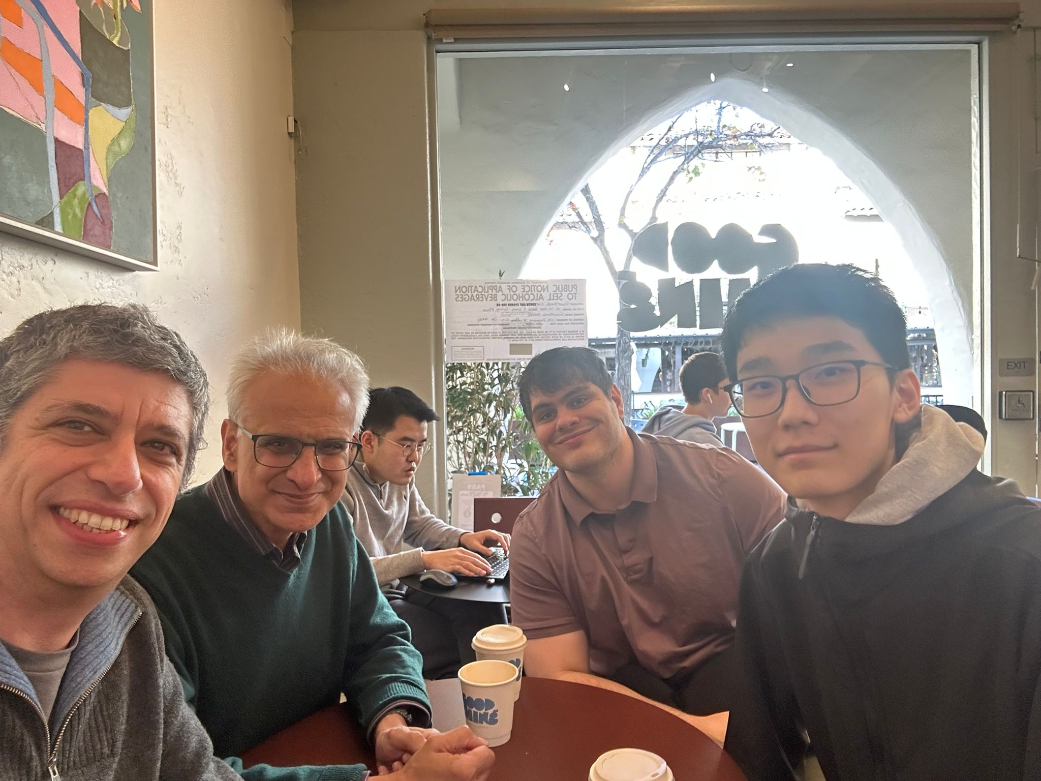 George, Satnam, Bardia and Ben, enjoying coffee near the Harmonic office.